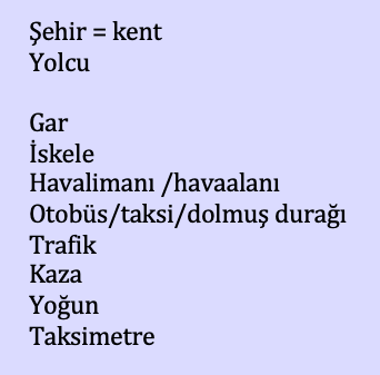 Unit 5 - Ulaşım Video & Worksheet Reading Worksheet Conversation & Worksheet Vocabulary Song & Lyrics